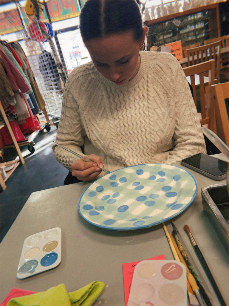- painting pottery with my mom and sister